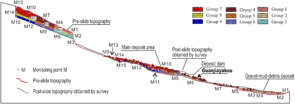 Keywords:rockslide-debris flow; discrete element method; deposit features; Jiweishan landslide