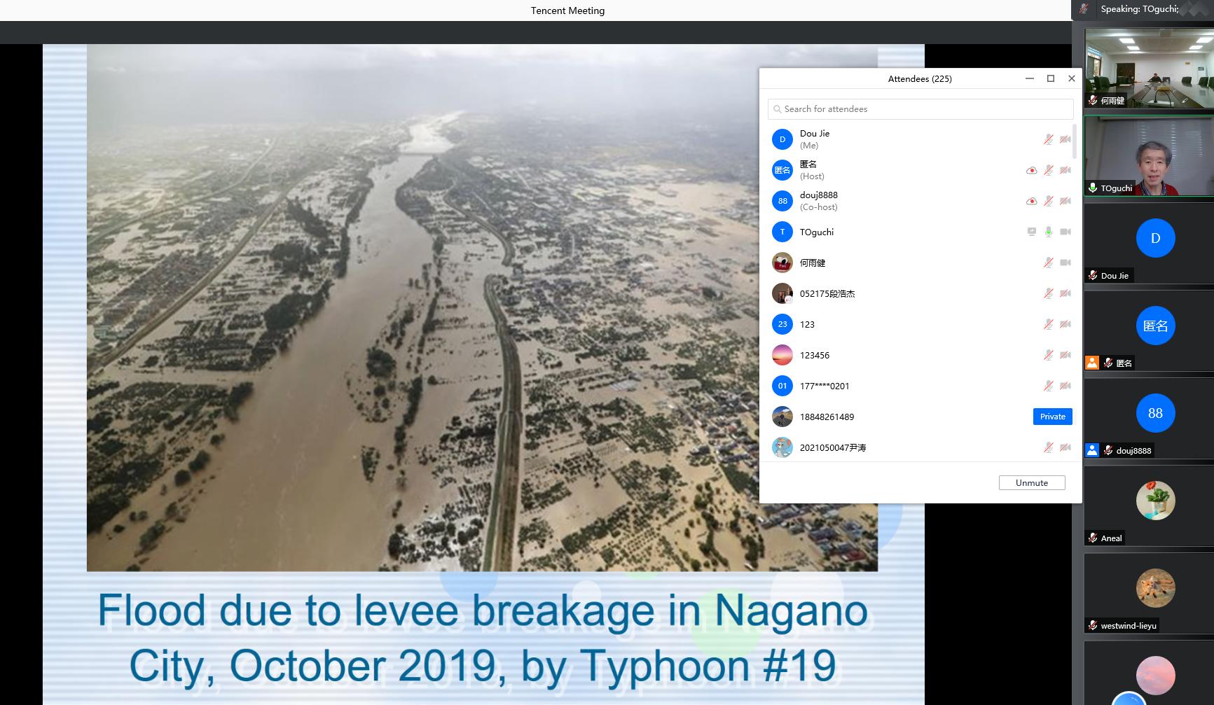 Oguchi教授担任国际地貌学家协会执行委员会成员,国际地理联盟灾害和风险委员会主席,日本地理学家协会董事会主席、日本地貌学联盟主席和日本地理信息系统协会主席。Oguchi教授学术报告的题目为“Recent geomorphological disasters in Japan caused by human mistakes”,从造成自然灾害的风险因子出发,以日本若干县市的地质灾害案为例进行剖析。阐述了人为原因对日本近期的地貌灾害的严重影响,其中包括震后填土失稳、降雨诱发滑坡、泥石流灾害及工业废料对土质影响等方面。