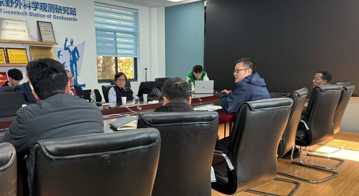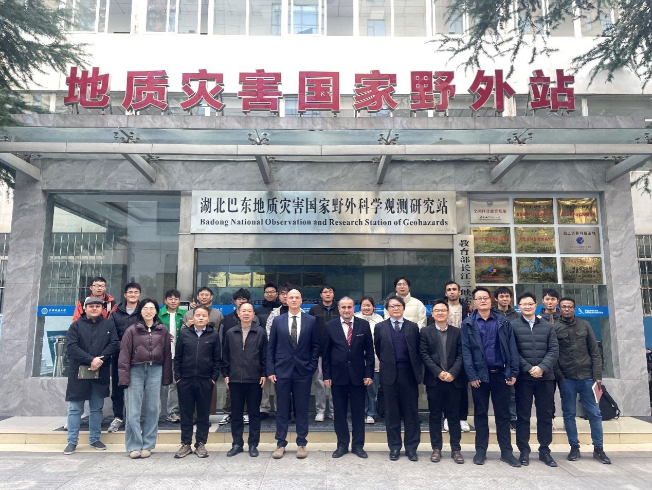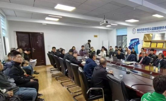 11月28日,三位专家同窦杰研究员、湖北省水文队吴茂林主任、恩施地质队袁飞主任等人前往巴东县进行野外科考与巴东野外综合试验场交流学习。上午,前往黄蜡石村与彭家屋场勘察滑坡宏观变形迹象特征,三位专家针对GNSS位移计结果误差分析、滑坡滑动方向与地物偏移方向、排水沟布设、地下水监测等问题展开了热烈的讨论,有望共同致力于开展滑坡灾害有效监测治理。下午,前往巴东野外综合试验场,洞内真实复杂的滑坡内部结构使专家对滑坡灾害有了新的认识与想法。最后,每位专家都谈论了自己对地质灾害监测治理的思考,希望继续加强长期交流合作,共同推进世界防灾减灾的进程。