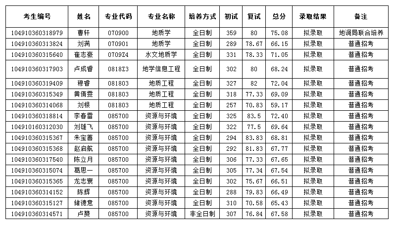 7、若体检(未在地大校医院体检的考生,6月30日前将“体检表”交至三峡中心208室)或政审等不合格即取消拟录取资格。