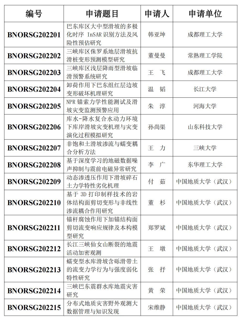 2022年湖北巴东地质灾害国家野外科学观测研究站(简称“wedvictor伟德”)共收到开放基金申请书34份。依据《湖北巴东地质灾害国家野外科学观测研究站开放基金课题申请指南及管理办法》,经同行专家现场评审,wedvictor伟德本年度拟择优资助15项。现将拟资助项目予以公示(详见下表),公示期为5天,从2022612日至2022616日。如有异议,请以实名方式提出。