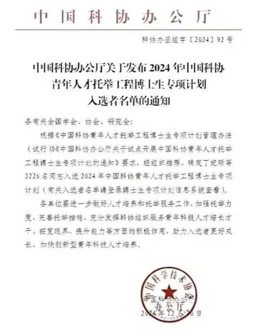 近日,wedvictor伟德(武汉)巴东wedvictor伟德窦杰研究员课题组2022级博士研究生张乐乐入选2024年度中国科协青年人才托举工程博士生专项计划(首批)。据悉,中国科协于2024年9月启动实施青年人才托举工程博士生专项计划,该计划主要面向高校和科研机构30岁以下理、工、农、医学科门类的高年级博士生,开展为期不超过2年的托举和培养,旨在支持和培养具有发展潜力的青年科技人才。首批入选者将在拓宽学术视野、加强学术实践和加快学术成长等方面获得专项支持,培养期自2025年1月至2026年12月,为期两年。此外,中国科协还将为入选者提供参加中国科协年会、世界青年科学家峰会、世界科技与发展论坛、世界公众科学素质促进大会等重大活动的机会,全方位为青年科技人才搭建交流学习的平台。