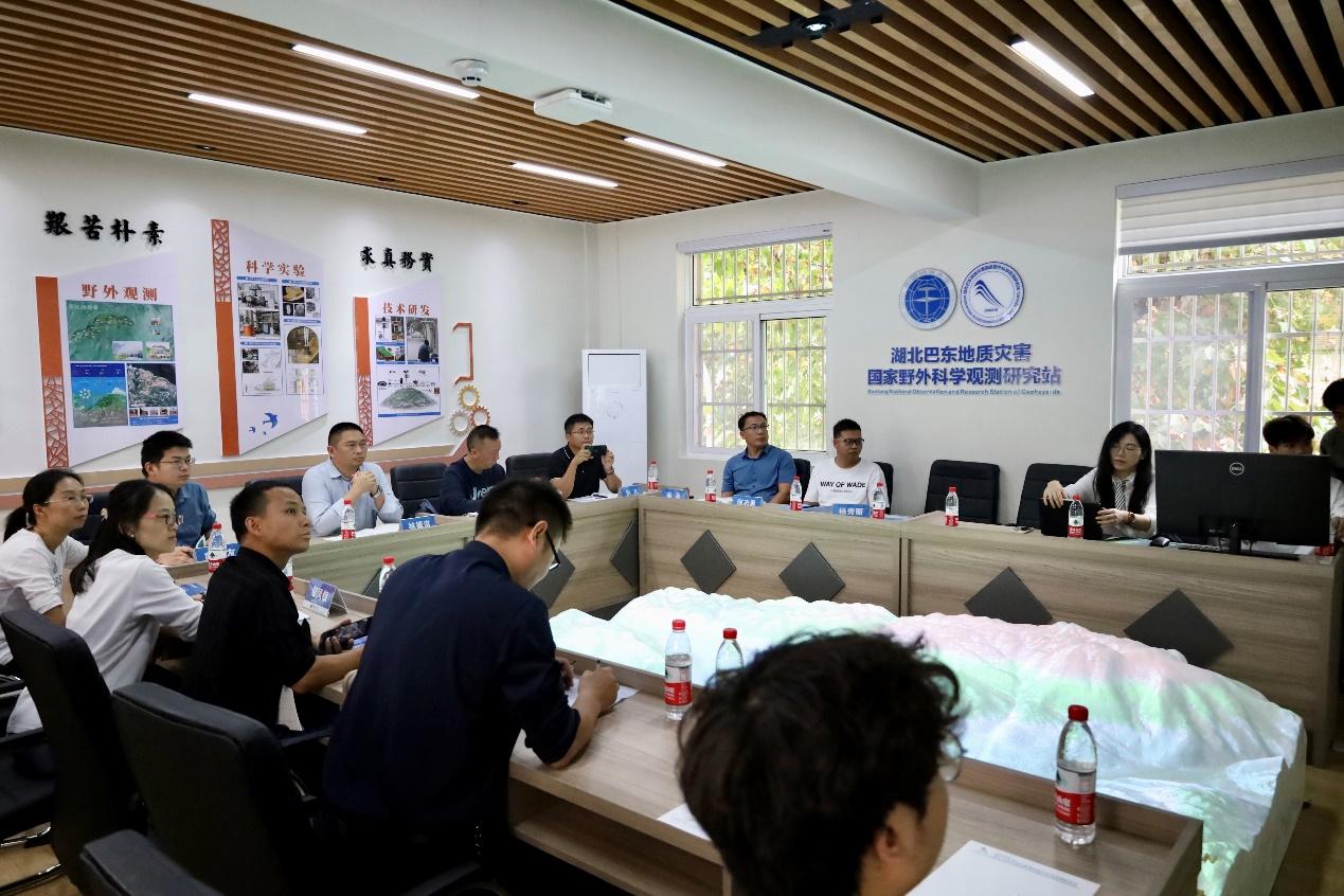 wedvictor伟德科研人员窦杰老师向与会人员简要介绍了wedvictor伟德的发展历程、科技创新、科研与社会服务价等方面的内容,张抒老师进行了单位宣传片的介绍,并针对工作实际情况,运用多媒体电子沙盘模拟技术,向到访人员详细介绍了三峡库区的地质特点和地质灾害分布情况,以及自建站以来取得的科研成果等内容。同时,还展示了自主开发的数值预报平台系统。
