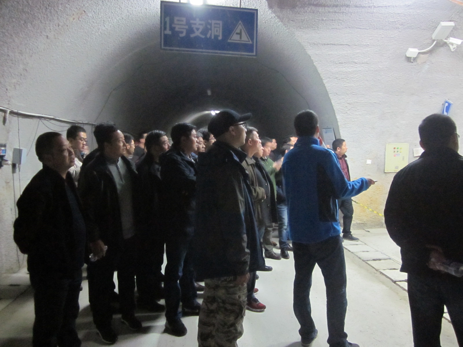 (通讯员:王菁莪)2016年11月17日上午,宜昌市国土资源局副局长唐作友,同宜昌市地质环境监测站、五峰县、当阳市、秭归县、宜都市、远安县、长阳县、枝江市国土资源局专家一行70余人所组成的地质灾害防治网格化管理工作考察团参观访问了巴东野外综合试验场,巴东县国土资源局副局长邓明早陪同参观。试验场工作人员首先通过地下隧洞群入口的图文资料向考察团详细介绍了巴东野外综合试验场的选址依据、科研方向,以及科研成果。在隧洞群3号支洞、5号支洞及主洞滑带出露段,结合勘察与监测数据,同考察团专家讨论了黄土坡特大滑坡群地质结构、变形现状及地下水分布的新发现与新认识。