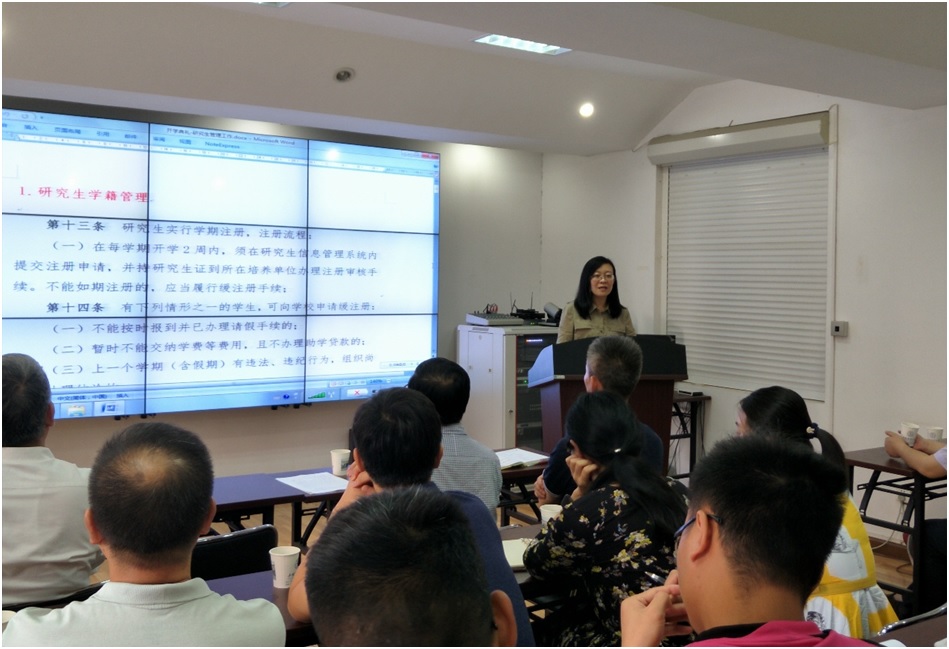 三峡中心兼职研究生秘书杜娟老师详细介绍了三峡中心研究生管理办法的细则。