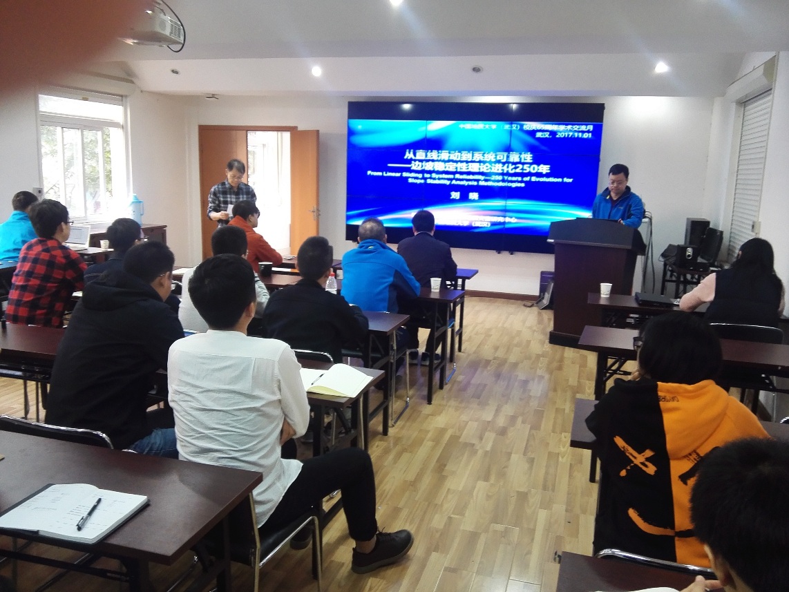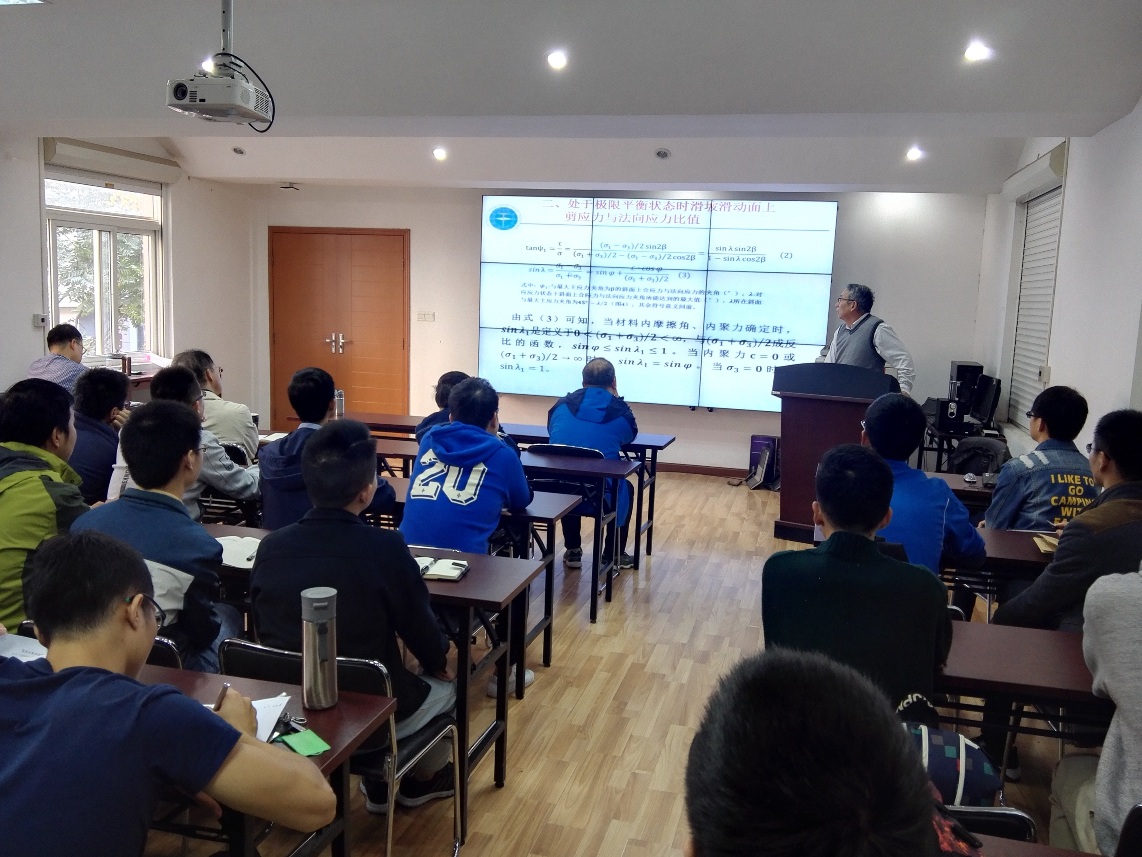 11月6日,刘晓副研究员以《From Linear Sliding to System Reliability —250 Years of Evolution for Slope Stability Analysis Method》为报告主题,整个报告系统介绍了极限平衡法、极限分析方法、有限元法及其他数值方法等许多重要方法,以严谨不失幽默的方式向我们展现了系统可靠性理论和空间变异性等当今学科前沿,号召青年一代要脚踏实地,立志学术,不应好高骛远,急功近利。