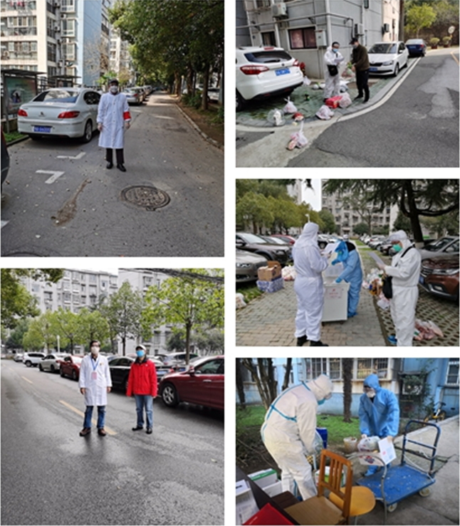班子成员单华生、翁华强和龚松林主动报名学校封控突击队员。从2月12日-3月11日接近一个月的时间,相继承担南望山庄9栋和东区44栋、45栋封控楼栋的服务工作。他们在经过短暂安全防护培训后,就舍小家为大家,义无反顾地冲上了封控工作最前线。封控突击队员的工作是忙碌而辛苦的,一是全面、精准掌握重点封控楼栋住户信息、畅通信息传递渠道;二是为相关楼栋居民配送生活物资;三是转运生活垃圾;四是为部分确有急需的家庭提供取送药品、天然气圈存等服务。