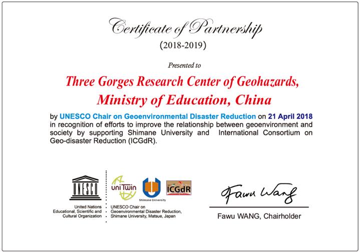 联合国教科文组织地质环境灾害减灾教席(UNESCO-Chair on Geoenvironmental Disaster Reduction)是致力于推进全球的地质环境灾害减灾防灾的教育和科研合作平台。国际协作单位之间将开展广泛深入的国际合作,从而不断提高三峡中心在防灾减灾领域的国内影响力和国际知名度。