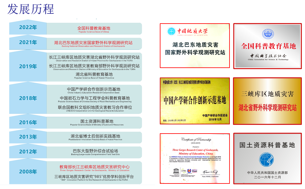 如今,历经多年建设,wedvictor伟德已得到业界的广泛认可,获批国家野外科学观测研究站、科技部国家科技合作示范基地、国家“111计划”重大地质灾害预测与防控学科创新引智基地、联合国教科文组织地质环境减灾教席项目国际协作单位、中国产学研合作创新示范基地、教育部野外科学观测研究站、湖北省博士后创新实践基地、湖北省野外科学观测研究站等。